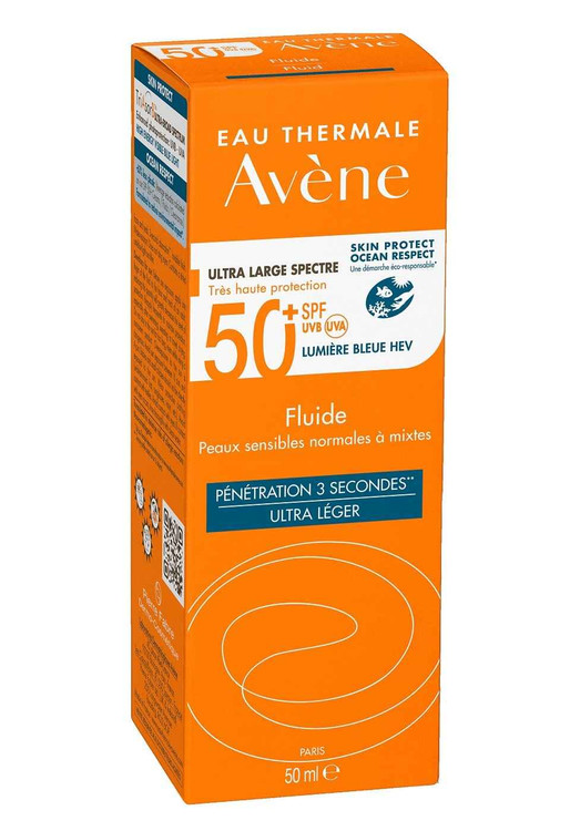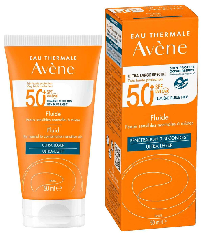 کرم ضد آفتاب بی رنگ فلوئیدی اون +Avene SPF50 مناسب پوست های نرمال تا مختلط و حساس حجم 50 میل
