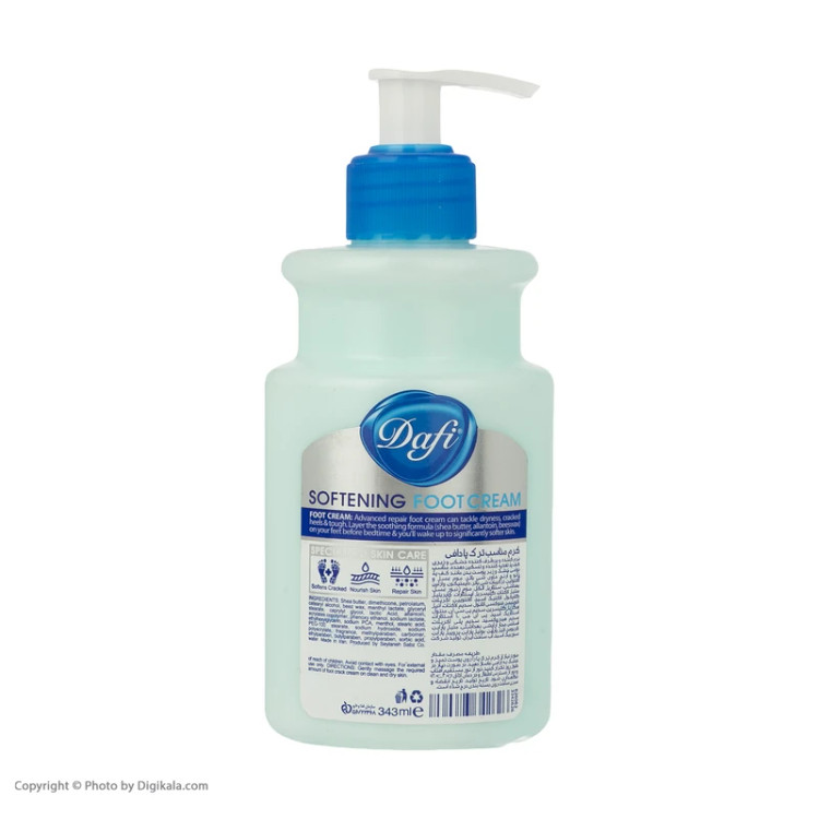 کرم ترک پا دافی محصولی مغذی مناسب آبرسانی و مرطوب کردن پوست کف پا، آرنج و زانو است. اگر شما هم در این قسمتها دچار شکستگی و ترک پوست شدهاید،خرید کرم پا را از یاد نبرید. این محصول با فرمولاسیون قوی خود به نوعی محافظ سلامتی پوست خشک و ترک خورده است. این محصول پوست شما را نرم و شاداب کرده و از بروز ترک پا جلوگیری میکند. شامل ترکیباتی موثر مثل شی باتر، موم عسل و الانتونین است.