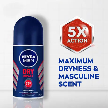 مام رول ضد تعریق 72 ساعته مردانه NIVEA نیوآ مدل DRY IMPACT حجم 50میلی لیتر (دو لیبل-اصل آلمان )