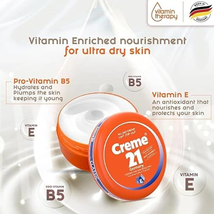 کرم مرطوب کننده کرم 21 اورجینال آلمان Creme 21 مدل کلاسیک CLASSIC حاوی ویتامین E حجم ۲۵۰ میلی لیتر
