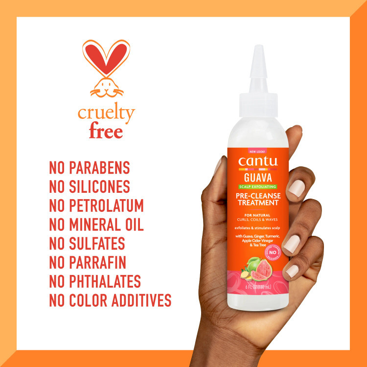 اسکراب لایه بردار کف سر گواوا و زنجبیل کنتو | Cantu Guava & Ginger Scalp Exfoliating Pre-Cleansing Treatment بدون استفاده از سولفاتها، سیلیکونها، پارابنها و الکلهای خشککننده که باعث آسیب به مو میشوند.