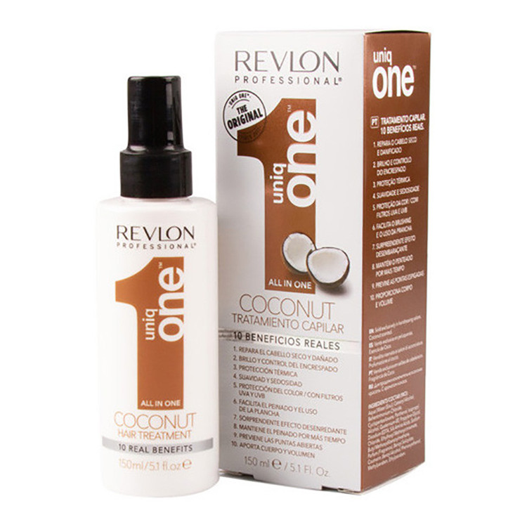 اسپری موی 10 کاره رولون یونیک وان رایحه نارگیل Revlon Uniq One محصولی بسیار پرکاربرد با طیف گسترده ای از قابلیت ها برای انواع مو می باشد. 10 عملکرد اسپری موی یونیک وان رولون شامل موارد زیر است: