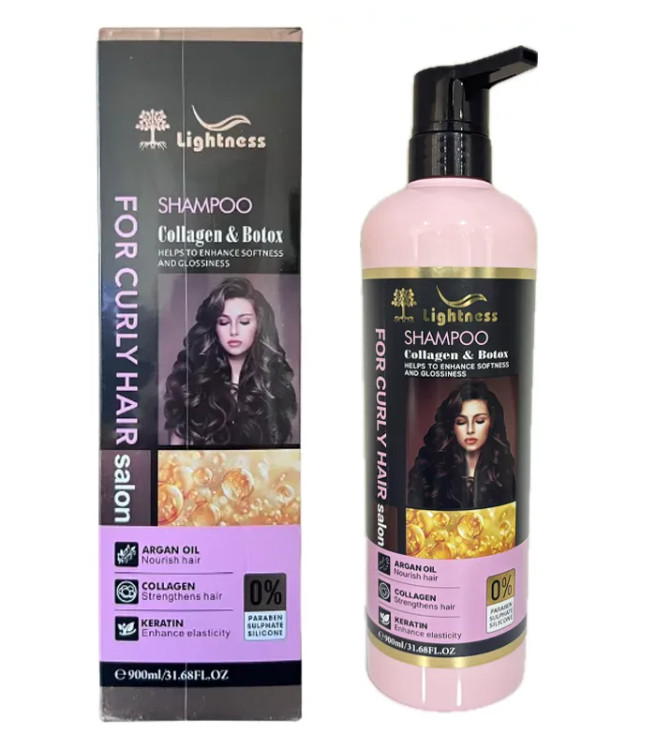 شامپو بدون سولفات موهای فر لایتنس Lightness حاوی کلاژن و بوتاکس حجم 900 میل