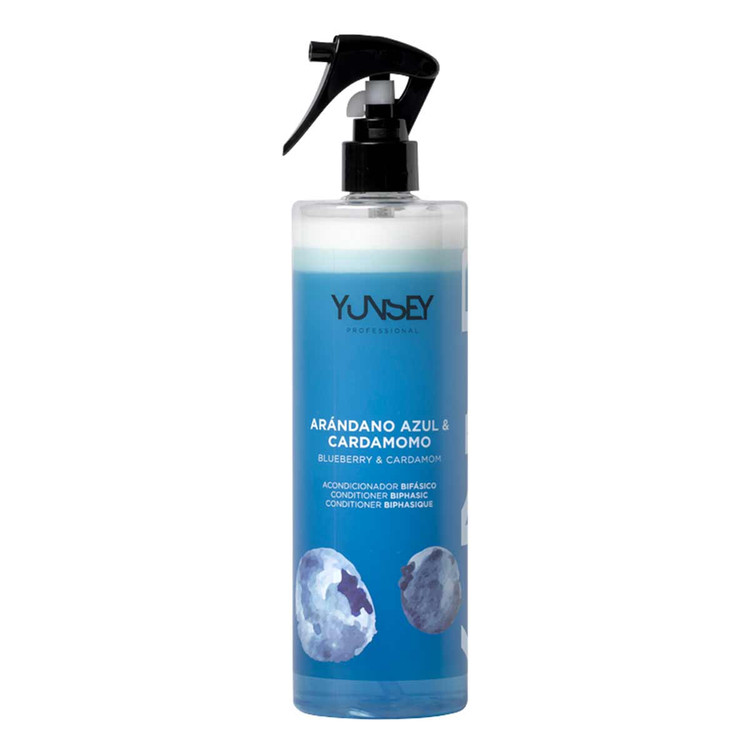 اسپری دو فاز مو بلوبری و هل یانسی YUNSEY مدل Blueberry & Cardamom آبرسان و نرم وترمیم کننده مناسب انواع مو حجم 500 میل