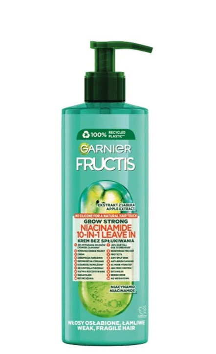 کرم مو ده کاره فوق سبک Grow Strong گارنیه دارای عصاره سیب با نیاسین است. این مواد باعث تقویت موهای ضعیف و نازک با تمایل به شکستگی می شوند. این محصول به لطف فرمول سبکی که دارد، برای موهای نازک عالی است.این ماده از دو شاخه شدن موها جلوگیری می کند، موها را مرطوب و صاف می کند.