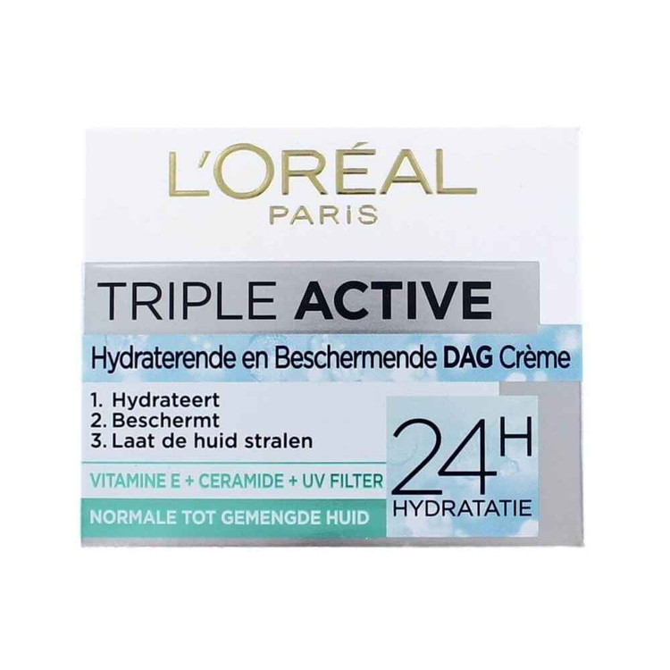 کرم روز آبرسان و مرطوب کننده،درخشان کننده و محافظت کننده (سه کاره) لورآل مخصوص پوست های نرمال و مختلط– مدل تریپل اکتیو – 50 میل L'Oreal TRIPLE ACTIVE Multi Protection Moisturiser DAY