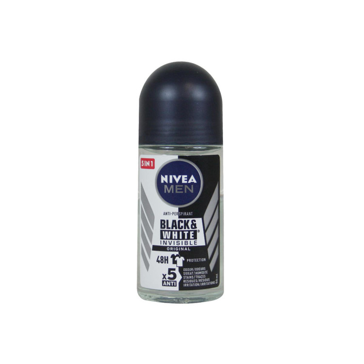 رول مام ضد تعریق 48 ساعته نیوآ مردانه مدل NIVEA Black & White Invisible Original حجم 50 میلی لیتر (دو لیبل-اصل آلمان )