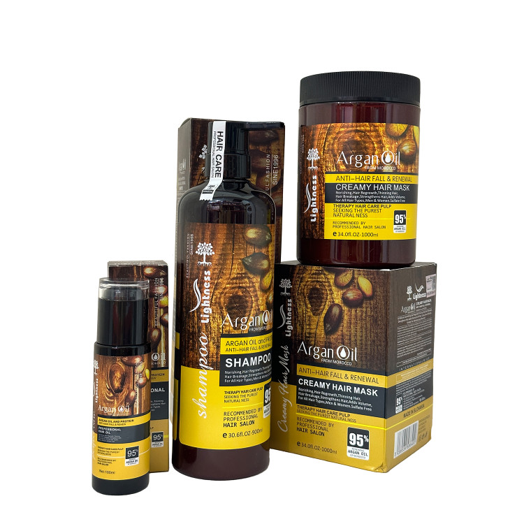 پک شامپو و ماسک و روغن آرگان مو ضد ریزش و تقویت کننده لایتنس اصلی مدل فاقد سولفات دارای روغن آرگان و پروتئین