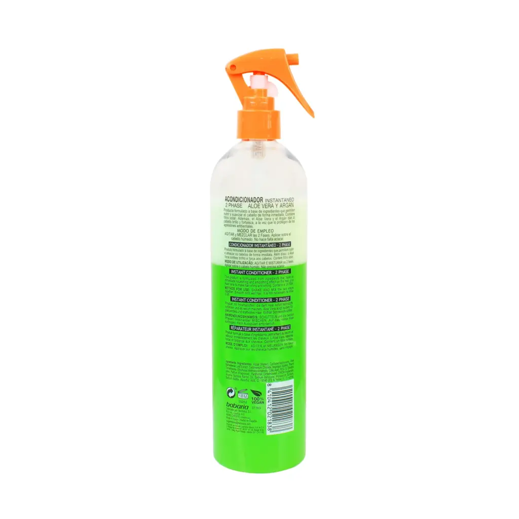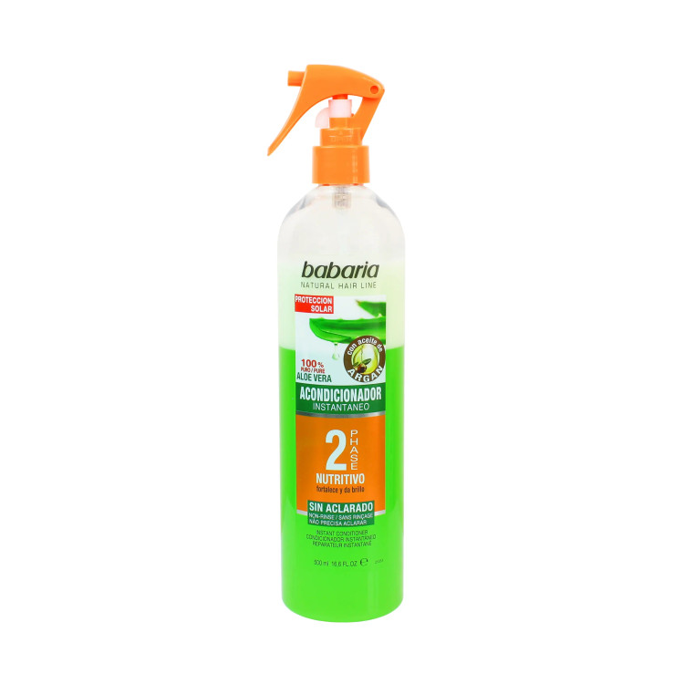 یک اسپری آبرسان قوی که تغذیه کننده و تقویت کننده موها محسوب میشود و موها را به نحو عالی نرم و مرطوب میکند. بعد استفاده از این اسپری وزی و خشکی مو کاهش مییابد و سبب درخشانی موهای شما خواهد شد. اسپری دوفاز آلوئهورا باباریا (500 میل) حاوی عصاره طبیعی آلوئه ورا و روغن آرگان است و برای موهای معمولی، خشک و آسیب دیده مناسب است. علاوه بر آن مانع گره خوردن موها میشود و از مو در برابر حرارت محافظت میکند.
