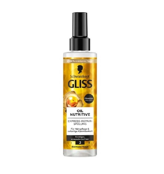 اسپری دوفاز و ضد حرارت گلیس طلایی مدل Oil Nutritive مناسب موهای آسیب دیده حجم ۲۰۰ میل | Gliss Serum Oil Nutritive