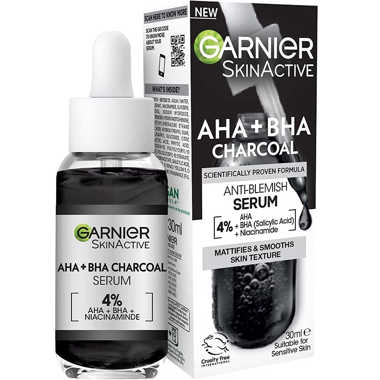 سرم لایه بردار ذغال ضدلک و ضد جوش AHA+BHA گارنیر مناسب پوستهای چرب و جوشدار حجم 30 میل | Garnier AHA+BHA Charcoal Anti-Blemish Serum